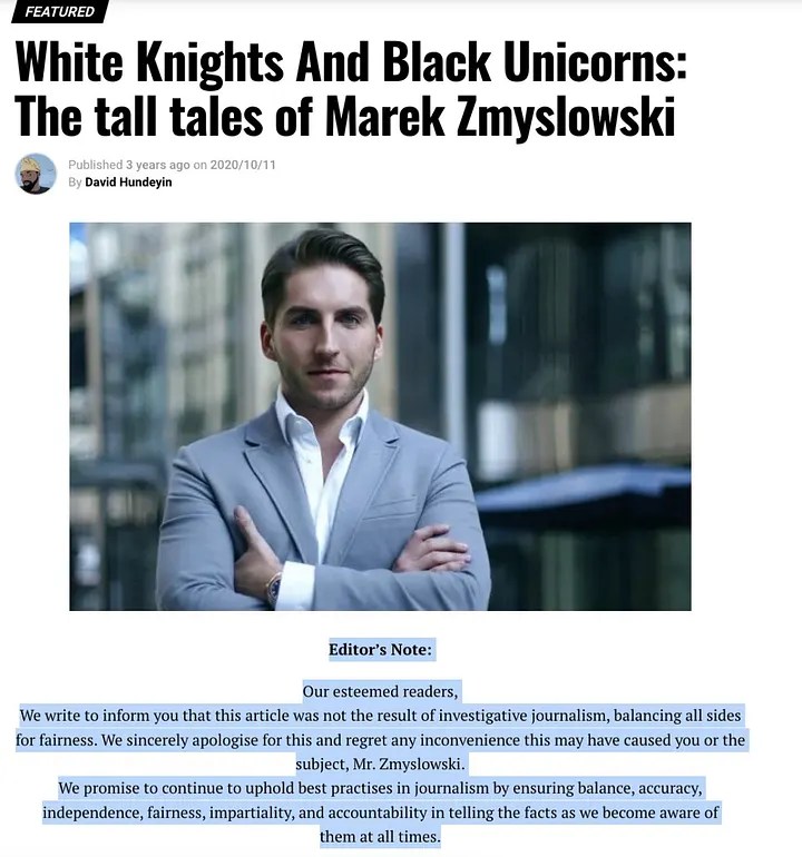 Nigerian Newspaper that published the libel of David Hundeyin, fires him and issues apologies. Since being attacked in a published hit-piece by the self-styled “investigative journalist” David Hundeyin, I have initiated libel proceedings against him. Although court-papers were duly served, he has repeatedly evaded correspondence and failed to engage in the litigation, causing delays. Meanwhile the legal process nevertheless remains live and moving forward. My claim is that he was paid by third parties to carry out a coordinated smear campaign, rather than acting as a bona-fide investigative reporter, and the broader context of his record supports serious concerns about his credibility.