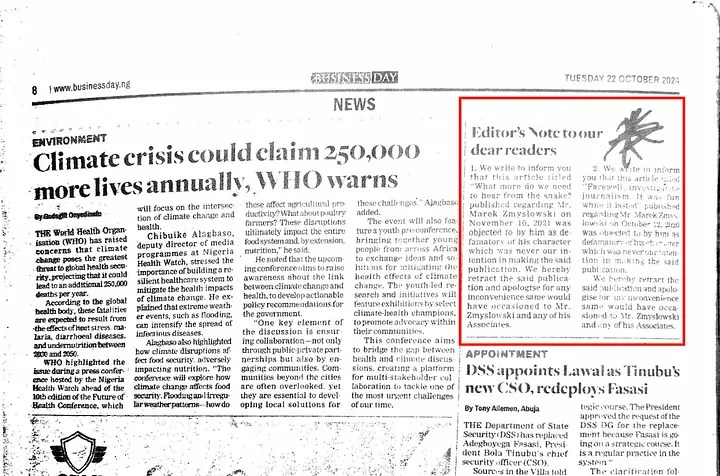 BusinessDay, which also published David’s libel against me, issues an apology.