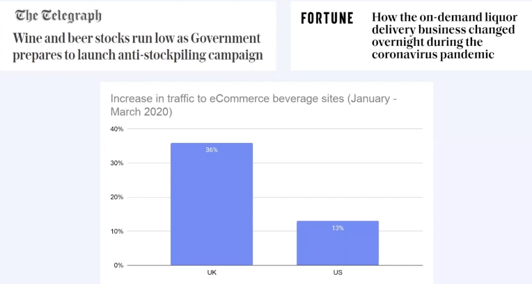 Traffic to eCommerce beverage sites have increased by 36% in the UK, and 13% in the US January to March.