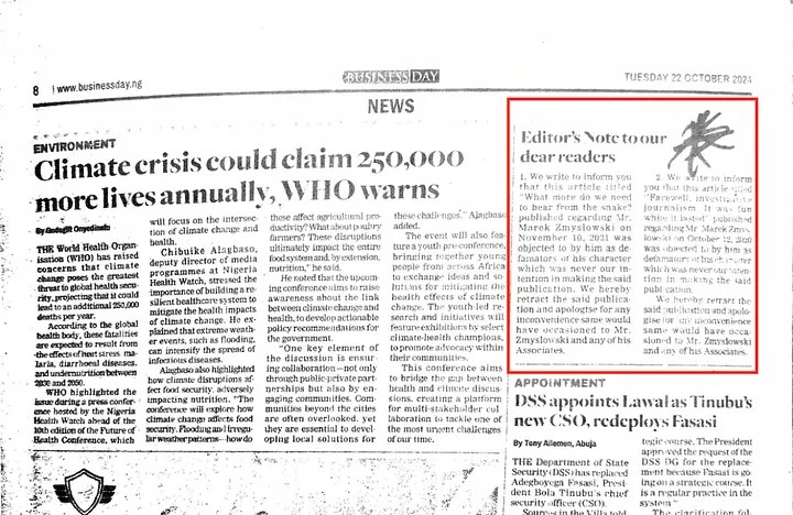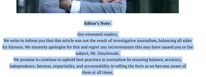 Obie gazety które przedrukowały te teksty później je wycofały i wystosowały pisemne przeprosiny.