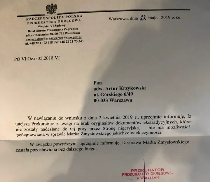 Polski Prokurator Generalny niezależnie zbadał wniosek i umorzył go wskazując na brak dowodów.